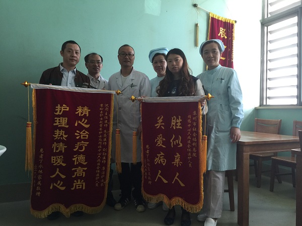 在“5.12”国际护士节当天,苏州社会福利总院精福中心精神六科全体医护人员收到了一份特殊的节日礼物,一位住院十多年的已故精神残障患者的家属们送来了两面锦旗,感谢医护人员对患者生前无微不至地照料,帮助患者完成生前的遗愿,让其带着尊严离去。精神六科护士长唐洁表示,在这样一个特殊的节日里,得到患者家属的充分肯定,心中顿感温暖,同时也会继续提供优质服务,营造和谐稳定的护患关系,激励护士理解患者、体贴患者、关爱患者,感悟职业的内涵,让爱心传递下去。