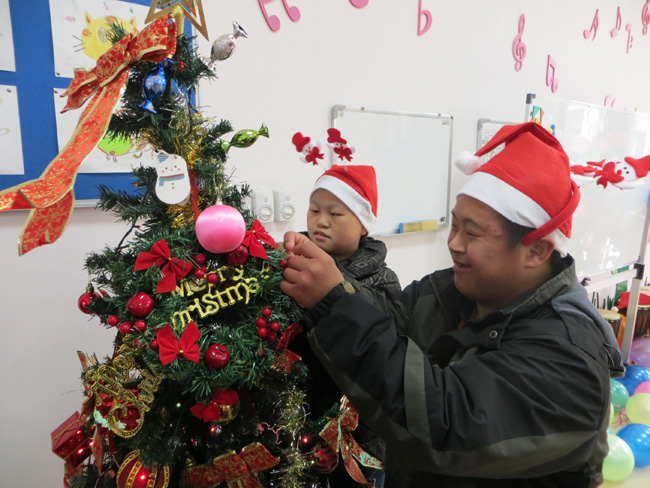 苏韵团队总能带来惊喜,此次不仅根据服务对象的需求和喜好,送来各色保暖的冬鞋,更请来专业厨师,现场制作鲜嫩的牛排,让大家足不出院,感受别致的西式餐饮;麦克维尔公司的志愿团队,根据残福中心拓展课程的需求,送来了丰富的绘画和手工制作材料,还与服务对象们一起,用五彩的气球、精致的饰品和闪亮的圣诞树,把活动室装点得如梦幻般美丽;苏州家喻户晓的主持人李刚也来到了青年残疾人中间,送来甜蜜的桔子并与大家亲切交流,令喜爱他节目的服务对象们深切感受到这位本土主持人的亲民气质;而志愿苏州团队则用他们一如既往的真诚陪伴,诠释着他们对青年残疾人最长情质朴的关爱。