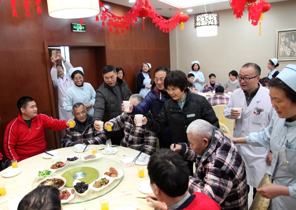 餐厅内张灯结彩,一派喜气洋洋的节日气氛,大家齐聚一堂,欢声笑语,品尝着食堂精心准备的年夜饭,提前共庆新春佳节。副书记张陆代表全院干部职工给服务对象送上节日的问候,祝他们身体健康,万事如意。