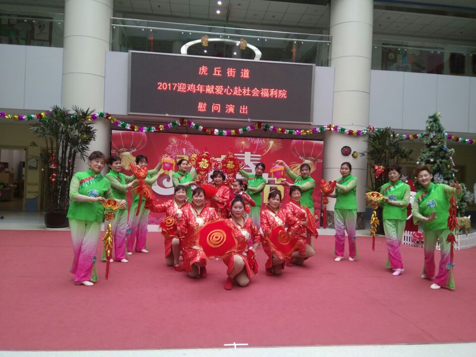 演出现场,陈永珍副院长致辞,预祝所有的服务对象春节快乐,并感谢虎丘街道每年春节前来慰问演出。街道文化站王站长在喜气洋洋的舞蹈《闹春》的序曲中宣读了慰问信,祝愿老人孩子们身体健康,新春快乐。姑苏区武术协会虎丘街道分会负责人也前来活动现场洽谈健身指导并签订协议,为服务对象免费定期开展武术健身活动。10多个节目为服务对象带来了欢乐和喜悦,赢得了热烈掌声,又一次真正地感受到了社会的真情和温暖。