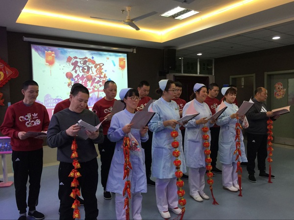 一年一度的新春联欢会已是精福中心的传统,每年新年前夕,我中心举办医患迎新联欢会,旨在丰富中心文化,促进医患和谐,搭建医患互动的沟通桥梁,温暖休养员的心灵。1月24日下午,社会福利总院院长孙惠忠、副院长许丽芳及各职能科室领导参加了2017年精福中心迎新春联欢会。