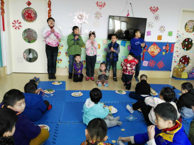 这次迎新春联欢活动是作为日常教学的一个组成部分,由学前班的老师组织,为此老师和孩子们早早就为了这个活动准备起来了。还特地制作了邀请函到各个教室邀请小伙伴们一起来参加这个迎新春活动。在活动中学前班的两个小朋友还当了一回小主播主持了整场节目。孩子们在一起互相表演节目、一起嬉笑、一起分享美食。在活动过程中孩子们不但知道了春节,认识了春节,通过邀请别班孩子来参加活动还增强了自己的主人翁意识、增进了大家之间的感情。