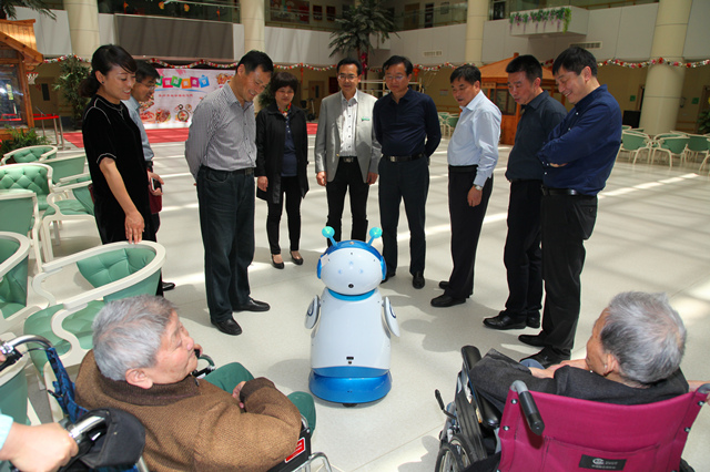 周天云副秘书长一行首先来到老年福利中心,实地参观了老福中心的养老环境、设施设备,全面了解了总院信息化智能化养老的规划、运用情况,现场体验了智能养老机器人,并与老年服务对象亲切交流。随后参观了“苏家社会体验园”,对体验园开展的陶艺制作、桃花坞木刻年画、手工串珠、动物饲养等新型康复体验课程进行了了解,最后考察团来到了儿童福利中心,儿福中心的孤残儿童们正在老师和志愿者的带领下开展康复活动,考察团询问和了解了儿童在院内的生活、教育情况。