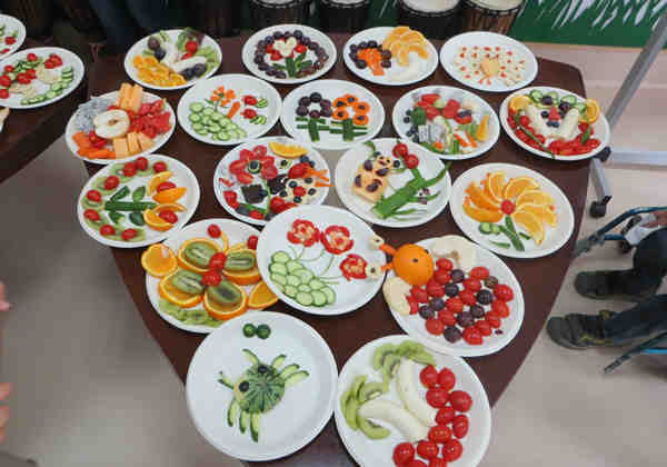 随着主持人宣布活动开始,大家分工合作,忙的不亦乐乎。用灵巧的手和专注的心,尽情发挥创意。一个个普通的水果转眼变成了赏心悦目的艺术品,有怒放的花朵、可爱的小狗、美丽的蝴蝶、呆萌的小螃蟹……每一件都充满创意、精美别致,从构思到造型设计无不反映出服务对象们特有的专注、认真与用心。捧着自己亲手制作的拼盘,大家脸上洋溢着成功的喜悦。此次活动不仅为服务对象带来了动手、动脑的机会,也加深了对各种水果的认识和了解,更提升了大家的合作意识。