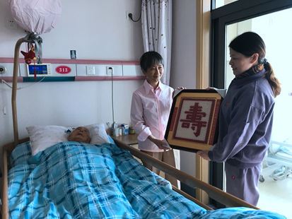 今年106岁的杨素珍是我院年龄最大的长寿老人。杨好婆从2004年起就住在了福利院,一住就是13个年头。103岁的赵嗣清是我院另一位百岁老人,在院里也住了5年了。今天是重阳佳节,老福中心主任顾彩娟带着工作人员,特意为两位百岁老人送上寿礼,表达总院对老人的关爱和祝福。