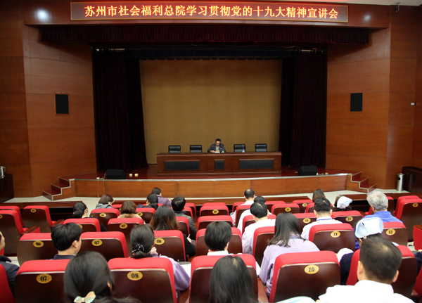 11月21日下午,市社会福利总院召开学习贯彻党的十九大精神宣讲会,孙惠忠院长作主题宣讲,院领导班子成员及全体在职党员参加。