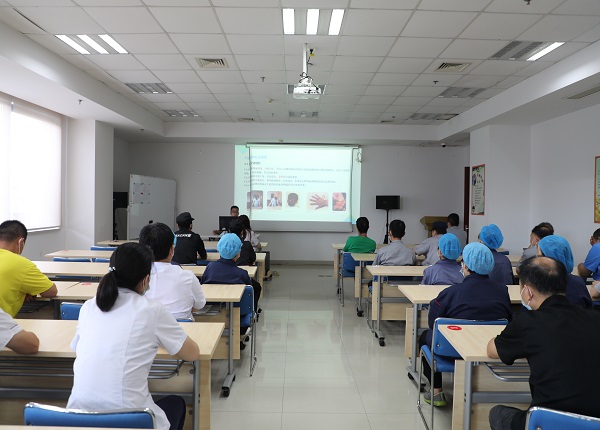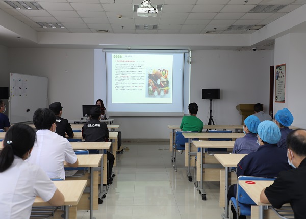 首先,后勤管理科单滢冰同志结合《食品安全法》对《养老机构膳食服务基本规范》进行解读,通过引入行业典型案例,对养老机构膳食服务基本要求、环境与设施设备要求、安全与应急要求、服务内容与要求等方面进行讲解,进一步增强工作人员的食品安全风险防控意识与能力,严把食品质量安全关。