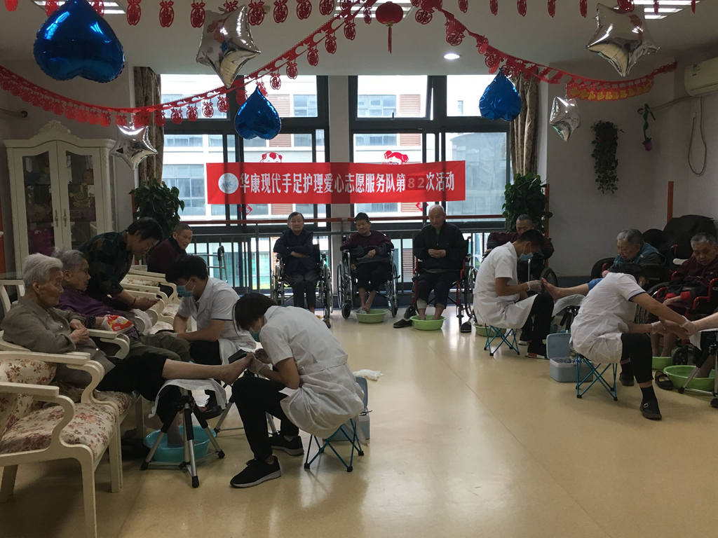 5月7日,华康现代手足护理爱心志愿者服务队第82次公益活动来到福利总院老福中心,为这里的老人义务修脚。