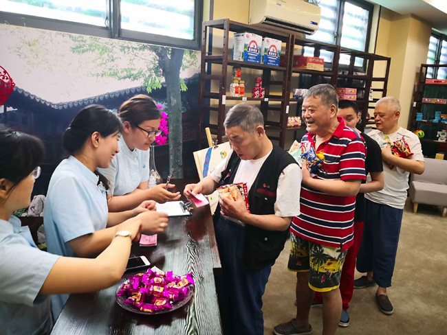 为了迎接第28个全国助残日的到来,做好全心全力为休养员服务,保障和改善休养员的康复生活,5月18日下午,精福中心阳光超市在40多名精障休养员代表的热情捧场下顺利开张。据悉,阳光超市只对休养员开放,并结合康复代币激励的疗法有的放矢的在休养员中逐步实行,旨在通过代币刺激,鼓励休养员积极参加康复活动,通过自身的努力获取代币券换购自己喜欢的物品,一方面让其体验购物的社会生活乐趣;另一方面在康复的过程中提高自身的发展能力,符合社会工作的增能理论。