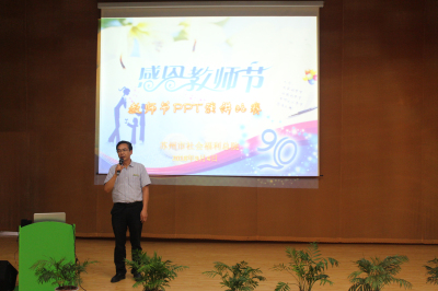 9月4日上午,由陈永珍副院长主持了教师节座谈会,大家就工作中遇到的各种问题进行了探讨。陈院长也代表院领导给各位老师提前送上了节日的问候,并对各位老师的日常工作予以了肯定。当天下午,儿福中心举行了教师节成果展示PPT比赛,6个特教班级的老师们通过丰富多彩的内容为大家呈现了她们日常的教学过程和教育成果。通过一张张生动的图片和精彩的视频,让我们看到了孩子们每一点成长和进步。最后早教班的邹亮老师获得比赛的一等奖。