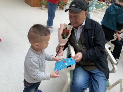 为了给老人们过一个有意义的节日,同时表达自己对于他们节日的祝福,孩子们早早的就准备了起来。在老师的帮助下自制了一张张精美的节日贺卡,写上一句句暖心的节日祝福。当天我们还准备了鲜花,孩子们来到老人们的中间,送上节日的鲜花和贺卡,说一句节日的祝福,给老人们一个爱的抱抱。老老少少就在这节日之中享受了一次祖孙的天伦之乐。老人们收获了来自孩子们对他们的关心,孩子们在活动中学习了传统尊老的中国文化。大家在一起其乐融融的度过了一个愉快的时光。