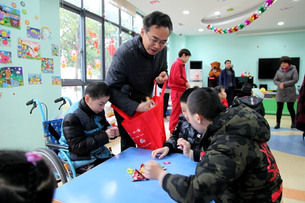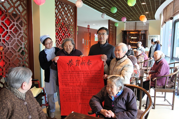 孙院长一行先后前往老年福利中心、精神病福利中心、残疾人福利中心和儿童福利中心给服务对象们拜年,分发象征喜庆、吉祥的各类糖果,并祝愿大家猪年身体健康、万事如意。期间在老年福利中心孙院长代表总院接下了老年人送上的一封感谢信,老人们对总院全体工作人员的辛勤付出表示感谢。同时孙院长一行还看望了奋战在总院各个条线的工作人员,向他们送上新春祝福,勉励大家在新的一年里再接再厉,紧跟新时代新要求,努力开创福利总院工作新局面。