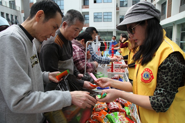 活动现场,人头攒动,气氛热烈。现场来自狮子会金鸡湖服务队的十多名志愿者带来了丰富的物品为本次赶集活动添砖加瓦,休养员们分批到场使用代币券有序购买自己喜欢的东西,吃的、穿的、书本等。