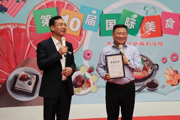 本届美食节有幸邀请到了苏州电视台著名节目主持人李刚老师担任全场主持。孙惠忠院长和李刚老师一起为现场的爱心企业颁发了荣誉证书以示感谢。国际风味美食节已成为服务对象接触社会、了解社会、体验社会生活的桥梁和平台。