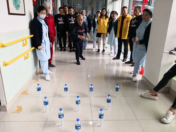 精福中心社会工作者根据床位医生、康复理疗师对住院休养员的身体、心理等方面的评估结果,设定了本次运动会的五个比赛项目:拔河、立定跳远、两人三足、套圈及投篮。