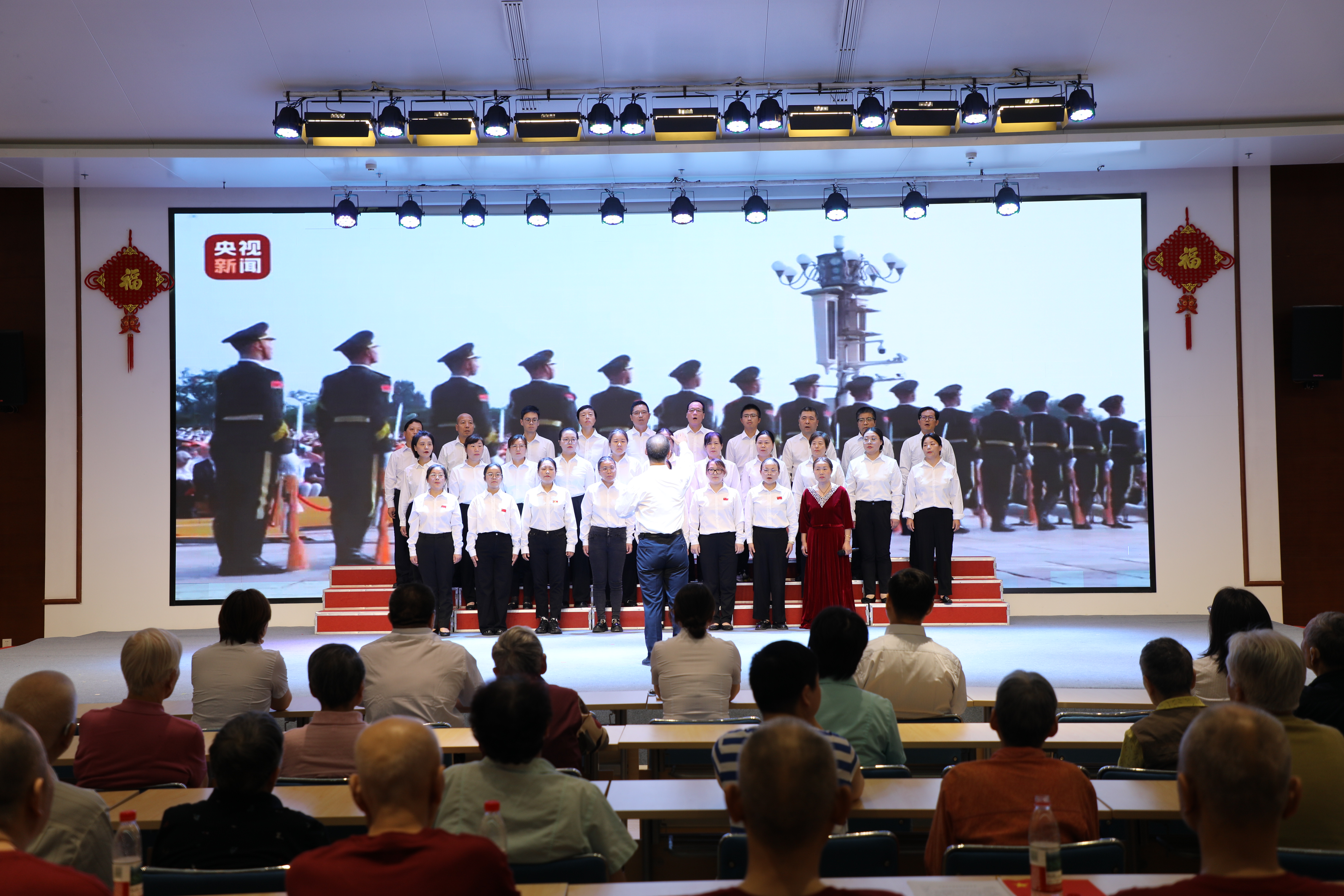 整场汇演以“爱国·爱党”为主线,涵盖歌舞、八段锦等多种艺术形式,既有经典传承,又有时代新声。汇演在气势恢宏的合唱《歌唱祖国》中拉开帷幕。由服务对象组成的合唱团以激昂的歌声,唱响对祖国的热爱。舞蹈《灯火里的中国》以灵动的舞姿展现了祖国的繁华与宁静;大合唱《在那桃花盛开的地方》表达了对故乡的深深眷恋;手势舞《我爱你中国》中,服务对象们用肢体语言向祖国深情告白。《我们走在大路上》《祖国不会忘记》《精忠报国》以恢弘的旋律、铿锵的歌声,唱响“新征程上再出发”的昂扬斗志。