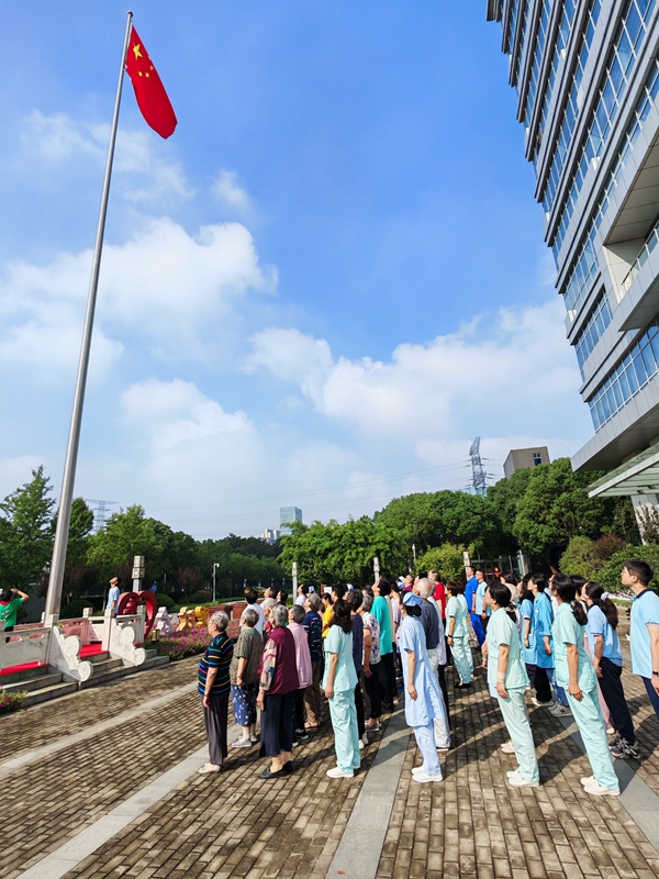 10月1日上午,清晨的阳光洒在广场上,总院举行了共庆祖国华诞的升旗仪式。2名少年儿童担任升旗手和护旗手,在国歌响起的那一刻,用力将国旗扬向天空,行少先队礼,来自全院四大中心的服务对象和工作人员庄严肃立行注目礼,大家的目光紧紧追随那抹鲜艳的红色,晨光中的升旗仪式传递出浓浓的爱国情怀。