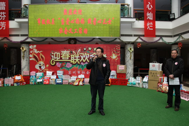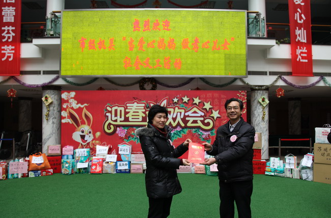 活动启动仪式由武宏伟副书记主持。朱永飞副书记与我院党总支书记、院长孙惠忠先后致辞。朱书记倡议机关人员积极投身志愿服务,为老人敬一份孝心,为儿童献一份爱心,预祝我院老人儿童新春快乐。孙院长向前来参加活动的各机关领导表示诚挚的感谢,孙院长指出,社会福利事业的发展离不开市级机关长期以来的关心、帮助与扶持,市级机关干部们迎风踏雪送来的爱心更让我院的老人儿童倍感温暖。孙惠忠院长代表福利院接收了市级机关妇工委和各机关妇委会集体和个人捐赠的现金、日用品、清洁用品等,张勤中主任代表市级机关妇工委和各机关妇委会,接受我院的捐赠证书。
