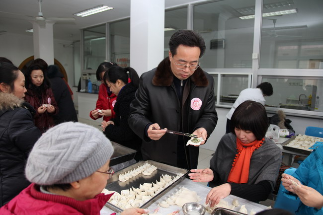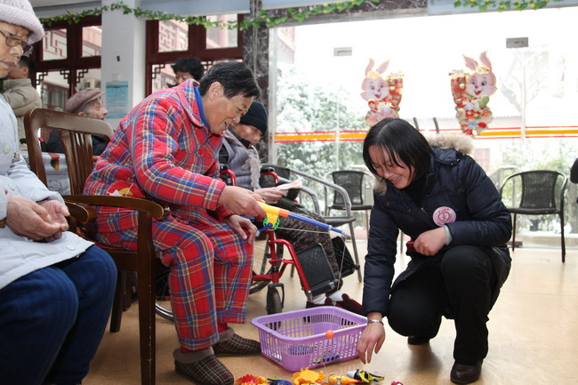 简短仪式后,市级机关志愿者分成四组展开志愿服务活动。扫雪组在朱永飞、吴宏伟两位书记的率领下,顶着寒风,冒着纷飞的大雪,把院内道路积雪清扫得干干净净。在儿康部,志愿者们亲切地抱起孩子,耐心细致地教他们认字识图,温柔小心地为婴幼儿喂奶喂饭,并和孩子们一起做起了游戏。在护理部,志愿者们握着老人的手,轻声细语地与老人拉起家常,陪老人们进行钓鱼、抛球等康乐活动。还有一组志愿者来到我院食堂,与膳食组的师傅们一起包馄饨,他们说,要让每一位老人儿童都尝到他们亲手包的爱心馄饨。