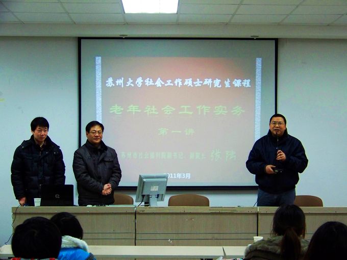 3月1日上午,我院专家正式开讲本学期苏州大学社会工作专业研究生课程。课程为机构老年工作实务、老年精神关怀。这是我院社工专家承担中国人民大学讲座课程以来,首次完整承担硕士研究生的学期课程。